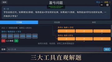 通过方块图、线段图、表格三种可视化工具理解并求解盈亏问题的数学教育游戏