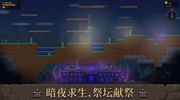像素风2D平台生存游戏。探索随机生成的地图,击败怪物,收集食物和武器,在祭坛献祭通关。4种生物群系、3种敌人类型、骨骼动画系统、动态光照。