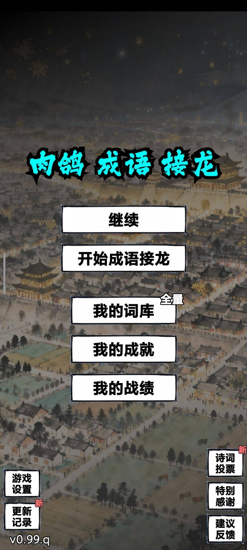 《肉鸽成语接龙》——水墨 × 国风 × Roguelike × 策略 × 益智 × 竖屏新体验!以经典成语接龙为骨,融入肉鸽式技能选择与成长,每局都是全新挑战!首尾接龙进阶多变规则:同音、倒二、异调…灵活运用技能,积累辞源力,解锁强力效果!三十多种主动/被动技能,策略搭配无限可能,一局一境界,成语也能玩出肉鸽味!50000+全量词库开放查询,140+成就等你来解锁!水墨丹青,智趣盎然,等...