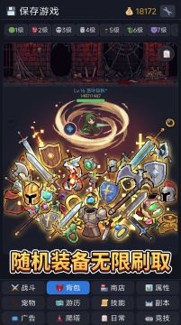 一款挂机刷装备游戏。击败七大等级怪物,收集从普通到混沌神器10种品质的随机装备,学习被动技能提升战力,挑战金币、经验、灵魂副本,捕捉宠物助阵,在无尽的刷刷刷中打造最强角色!