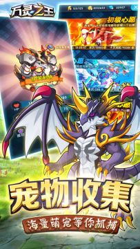 【万灵之王】是一款刺激又激萌的宠物养成游戏,在游戏中你将会化身成为宠物训练师,踏上旅程!上百中形态各异的宠物等你去收复提升它们的能力,进化宠物让它们变得更强!探索未知世界,发现更多未知的生物,各位训练师们赶快带上你的宠物迎接新的挑战吧!