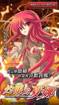 《灼眼的夏娜》,為日本角川集團監製,首款正版授權且忠於原著的3D ARPG戰鬥手機遊戲,輕小說是日本作家高橋彌七郎所撰寫。某一天,平凡的高中生坂井悠二的身旁出現了一位少女,名叫夏娜,她對坂井悠二說:「你已經死了」。原來在這個世界之外,還有一個被稱作「紅世」的世界。而紅世中的「紅世之徒」為了他們的欲望,捕食人類身上的存在之力。存在的消失,會破壞這世界的平衡。這個「炎發灼眼的討伐者」的少女即是為保.....