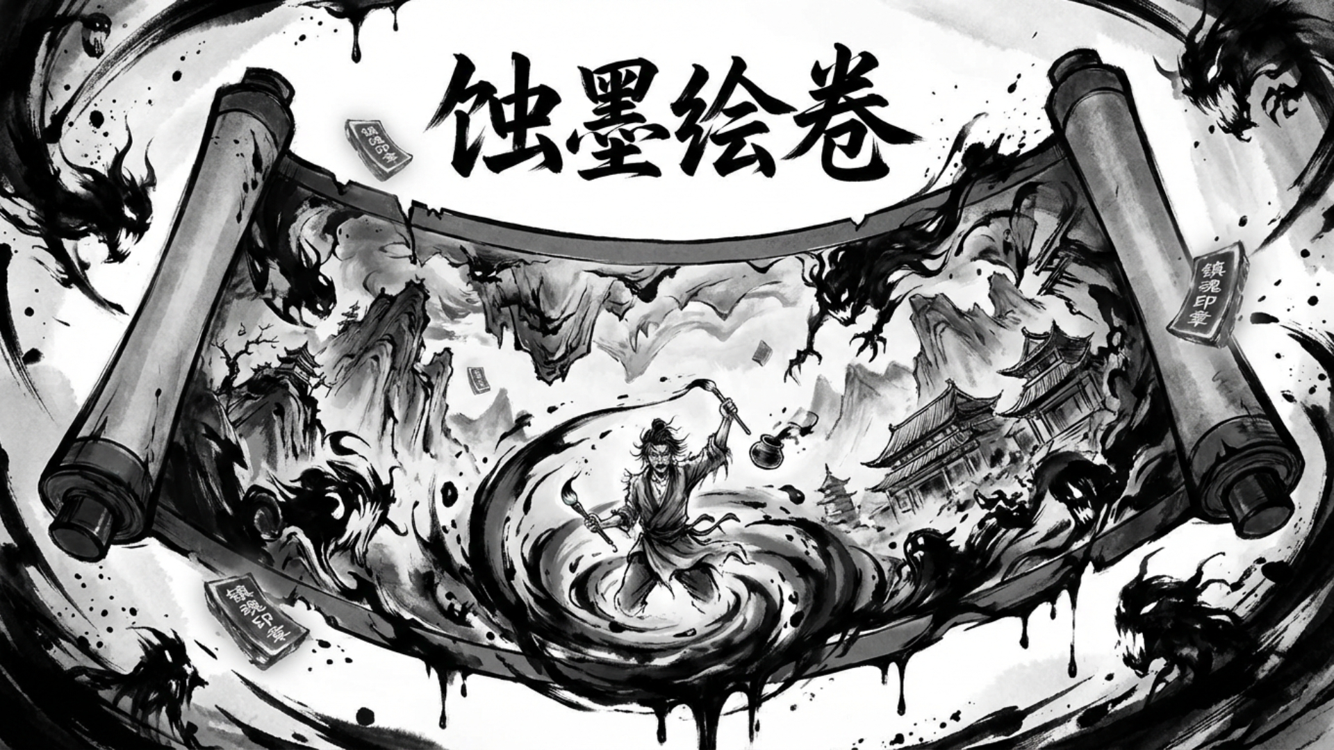 你是一名古画修复师,在修复一卷名为《蚀墨图》的残卷时,意外被吸入画中世界。这是一个黑白颠倒、水墨横流的诡异空间。你必须收集散落的镇魂印章,利用修复师的工具,修补画中的漏洞,才能逃离这不断吞噬现实的墨色梦魇。