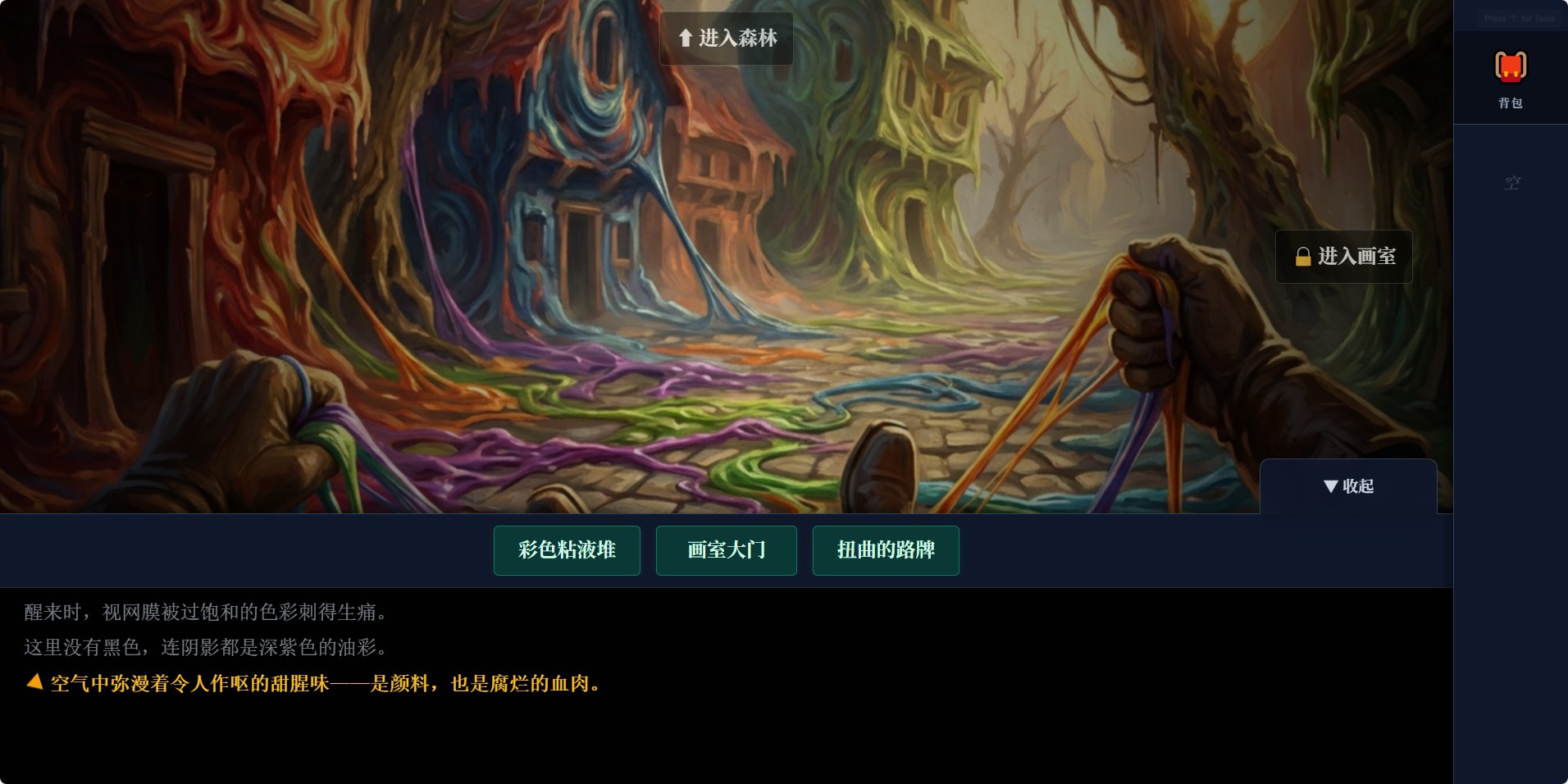 你误入了一座名为‘霓虹冢’的隐世村落。这里没有阴影,只有调制而成的极度鲜艳、永不褪色的油彩。画在墙上的居民正盯着你,试图将你也变成一抹新的色彩。