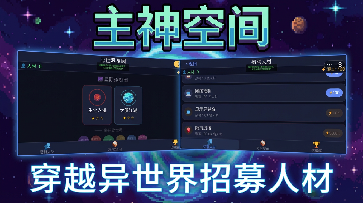 穿越万界,收集神物!招聘人材派遣至生化入侵、大傲江湖等异世界探索,收集从D级到SSS级的稀有宝物,点亮收藏室。设定探索时间、管理人材生死存亡,体验策略与运气的博弈!