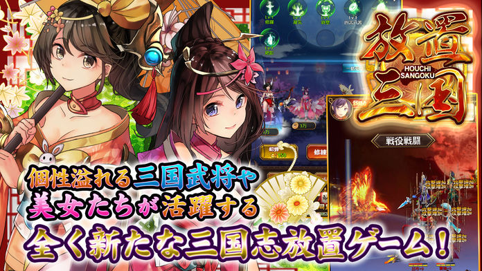 ■放置系王道三国演義三国志の世界で天下統一を目指そう。戦闘は全自動!あなたが寝ている間も武将はコツコツ強くなる!放置していても楽しめる、放置系RPG!■武将の編成が勝利のカギ有名な武将たちを編成しよう。武将の持つスキルを上手く組み合わせ、大ダメージを叩き出そう!相手との相性を考える、戦略式のバトルが楽しめる!■装備をコレクション装備はレベル毎に相当数がドロップ!武将の強化に...