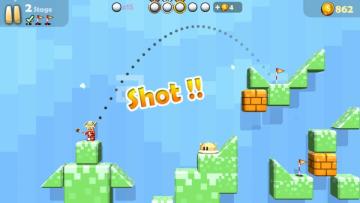融合高尔夫和足球的像素风街机游戏。