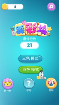 踩彩块是一款对手速和眼速要求较高的有趣游戏。当游戏开始的时候,识别角色前方块颜色并点击对应的颜色按钮即可跳跃,根据你的手速,你可以跳得尽可能快。这款游戏使用了动态的平台生成机制,这使得它无穷无尽,所以你的最终目标是尽可能多的得分!