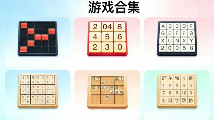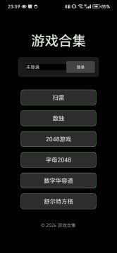 游戏合集是一款精心设计的休闲益智游戏集合,包含了多款经典游戏:扫雷、2048、字母2048、数独、数字华容道和舒尔特方格。每款游戏都支持多种难度等级,并有完整的关卡系统和分数记录功能。游戏界面简洁美观,操作流畅,适合各个年龄段的用户。