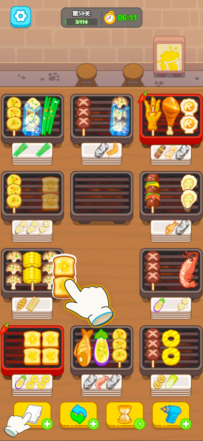 欢迎来到《疯狂烧烤摊》的美味世界!准备好在这场充满乐趣的烧烤狂欢中,大显身手了吗?在这里,你就是烧烤摊的顶级大掌柜!你的任务是将各种诱人的烤串完美地摆放在盘子上。三根相同的烤串碰到一起,就会奇迹般地消失,收获满满的成就感。简单的拖动和点击操作,让你轻松体验烧烤达人之旅。- 操作轻松,欲罢不能:只需指尖轻点,拖动烤串,让烧烤火力全开,趣味无穷!- 烧烤盛宴,琳琅满目:从香喷喷的牛肉串到鲜...