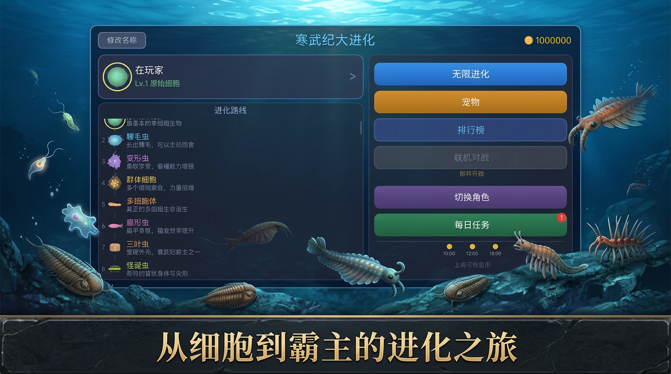 回到5亿年前的寒武纪海洋,从一颗原始细胞开始,觅食、战斗、不断进化。解锁鞭毛虫、变形虫、三叶虫等远古生物,体验生命大爆发的壮阔历程,挑战排行榜登顶!