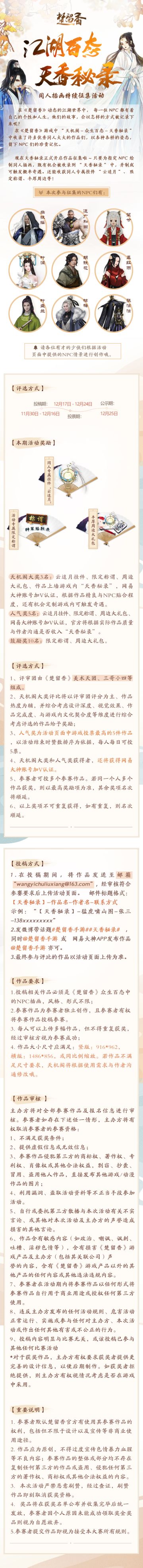 云追月悬赏!天香秘录同人插画持续征集,大触请到碗里来!