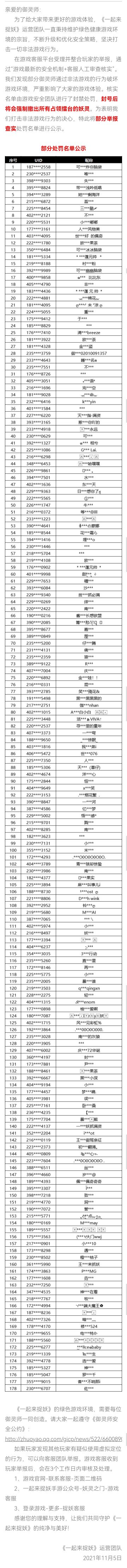 11月5日违规游戏行为处罚公示