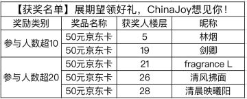 【获奖名单】展期望领好礼,ChinaJoy想见你!