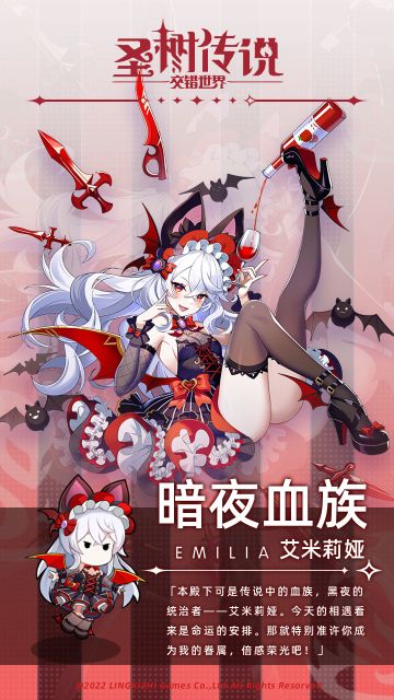 { "text": "名字:暗夜血族-艾米莉娅\n拟态:北美吸血蝠\n属性:暗\n性别:女性\n年龄:18\n职业:近战\n武器:操纵血液形成武器\n性格:声名狼藉的组织“夜血兄弟会”的首领,外表看起来个有点妹控的优雅少女,内在也有着杀伐果断的恐怖一面。对邪神使徒充满着仇恨,无法忘记好友的死和邪教徒对自己的迫害,亲眼目睹了好友的死而力量暴走,救下了把自己当成姐姐的塔尼娅。之后,她创立了组织,把猎杀邪神信徒作为自己的首要目标,救出并收留了有和自己一样经历的伙伴们。但是组织雷厉风行、不择手段的作风,经常不由分说就在人群中干掉邪教使徒和夺取邪教的物资的行为,在不知情的人们看来这个组织都是个杀人掠货的邪恶组织。由于力量暴走的后遗症,她需要定期汲取他人的能量才能维持住身体,为了不伤害到伙伴,她一个人悄悄到暮光医院接受芙洛琳的治疗,也是那个怪医为数不多的朋友。", "raw_text": "" }
