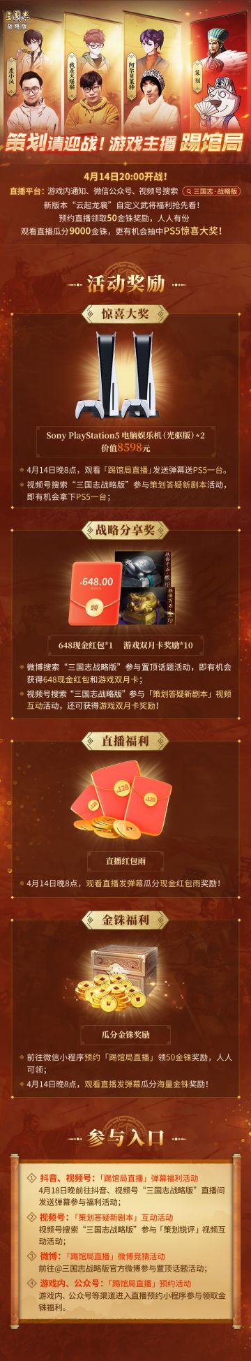 高智力吕布?黄巾军庞统?新剧本奇葩阵容今晚一次性看够!还有PS5游戏机、648和海量金铢福利等你来拿!