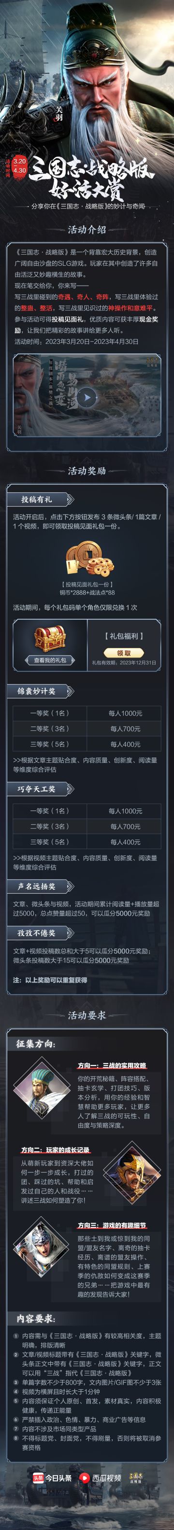三国志战略版好活大赏活动来袭!投稿在三战里碰到的故事拿现金大礼!