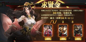 任务通关送顶级武将助阵