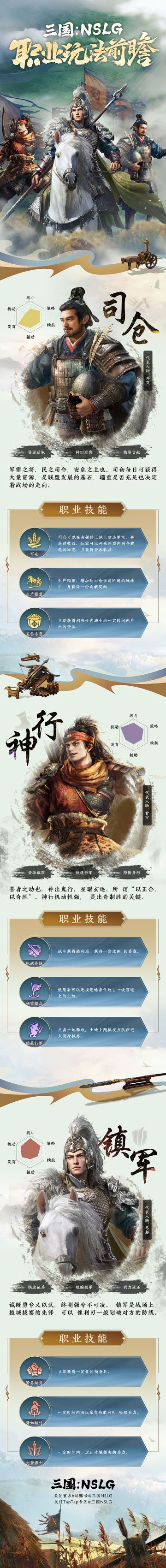 来啦来啦~ 主公们想要的《三国:NSLG》六大职业身份前瞻,乔妹今天一次性全放出,开测后你最想选择哪个职业呢,赶快在评论区聊聊吧~! ------------------------------------------------------- 首款多职业扮演沙盘SLG《三国:NSLG》7.27尝“先”测试即将开启,欢迎各位主公们预约游戏,并加入官方QQ群(711926000),一起和乔妹唠嗑三国