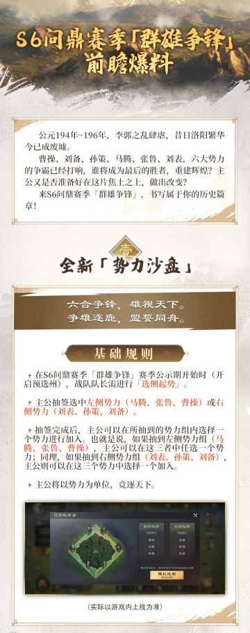 乔妹探营丨S6问鼎赛季「群雄争锋」前瞻爆料 各位主公好!本期乔妹探营带来的是S6问鼎赛季「群雄争锋」的前瞻爆料内容! 详细内容可见下方长图↓