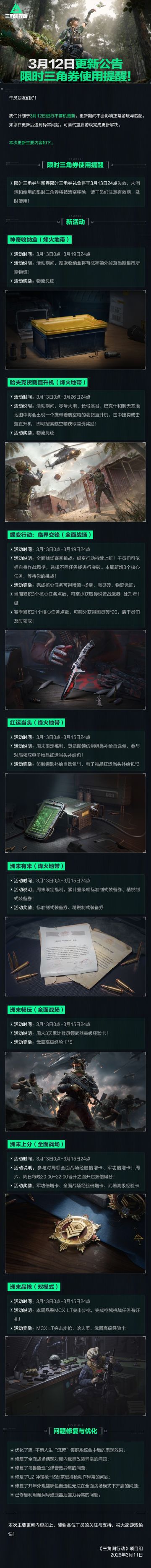 3月12日更新公告丨限时三角券使用提醒!