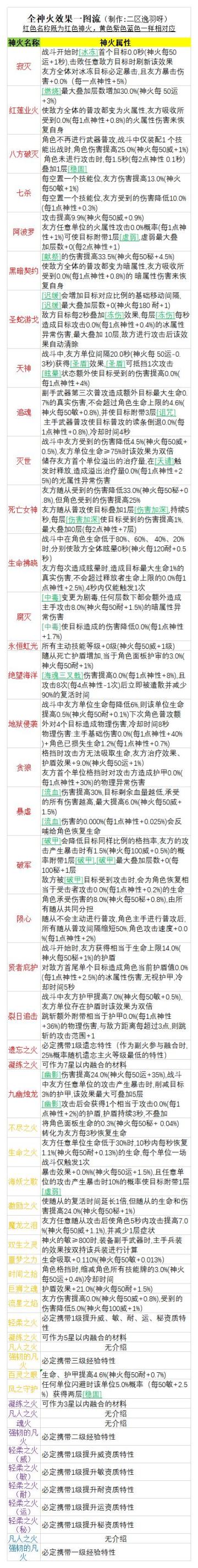 神火及特性整理(一图流)