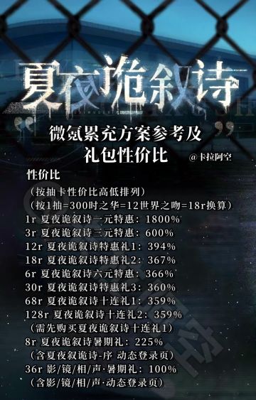 夏夜诡叙诗礼包抽卡性价比及微氪累充方案
