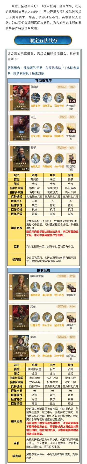 攻略分享丨「机甲狂潮:全面战争」五队共存方案