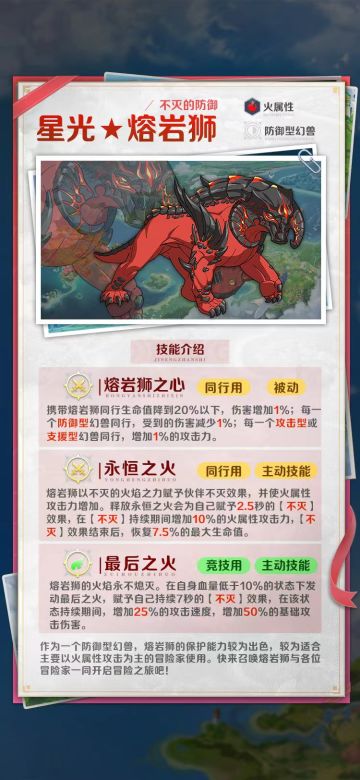 不灭的防御|火属性【星光★4熔岩狮】幻兽介绍