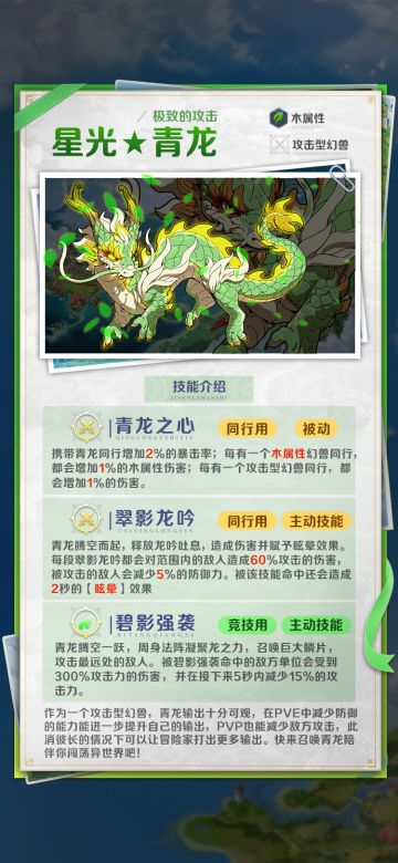 极致的攻击|木属性【星光★4青龙】幻兽介绍