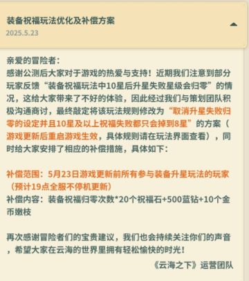 装备祝福玩法优化及补偿方案