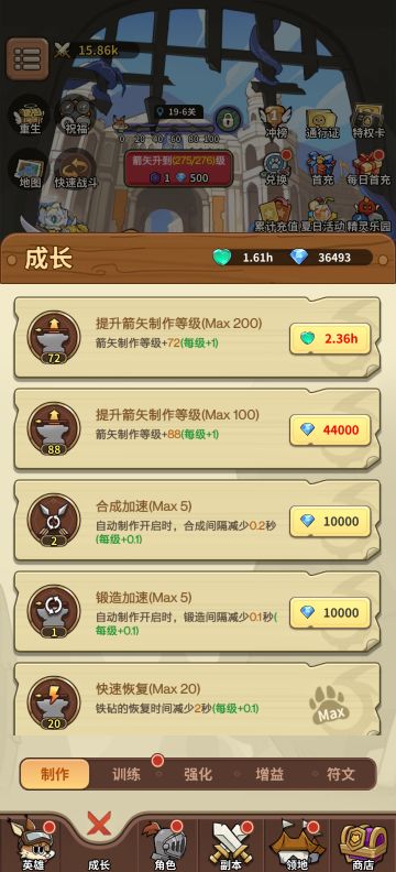 弓箭作坊升级花费。