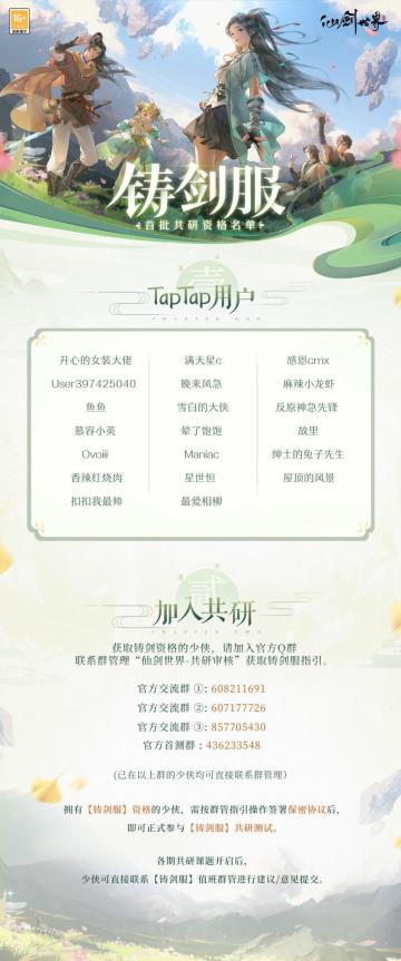 《仙剑世界》-【铸剑服】首批资格名单
