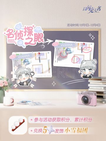 展现名侦探之眼,获取五星限定发饰「小雪福团」!