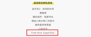 恭喜Free kick Superstar获最佳移动单机游戏提名