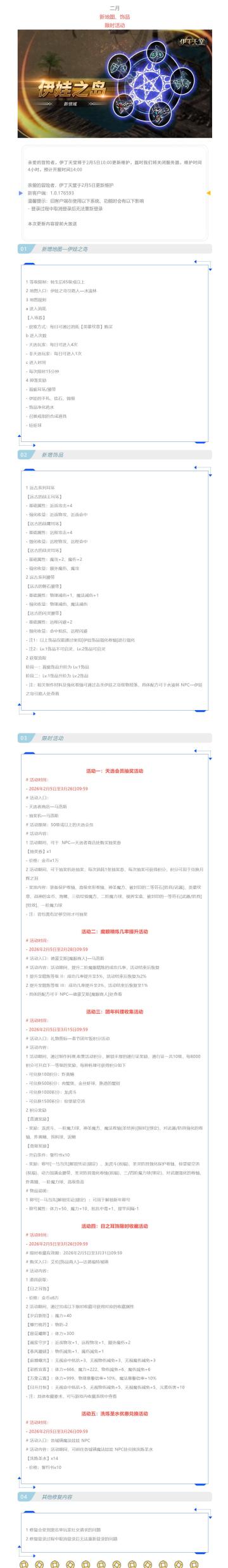 |伊丁天堂|应许之岛更新及活动公告0205