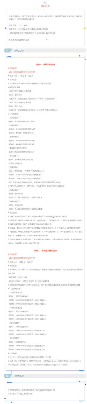 |伊丁天堂|[梦想启航][加拉哈德]更新及活动公告0829