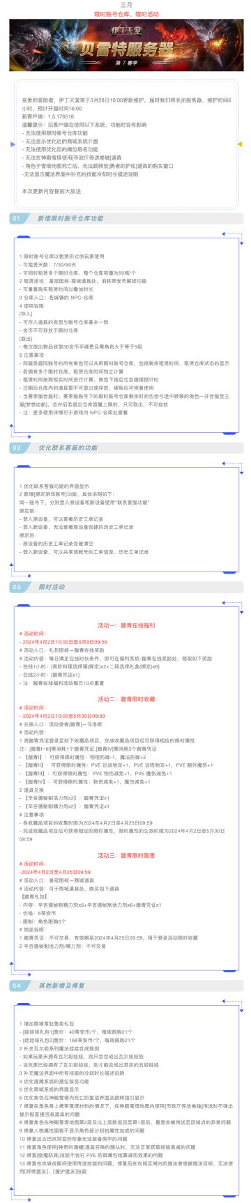 |伊丁天堂|第7赛季-贝雷特开服及活动公告