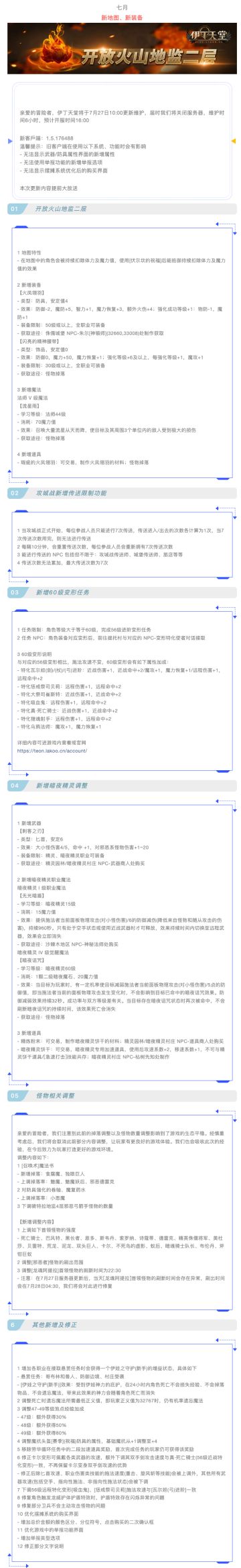 |伊丁天堂|梦想启航更新公告0727