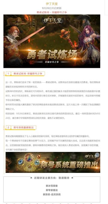 |伊丁天堂|应许之岛9月更新预告:勇者试炼场 - 荣耀称号之争