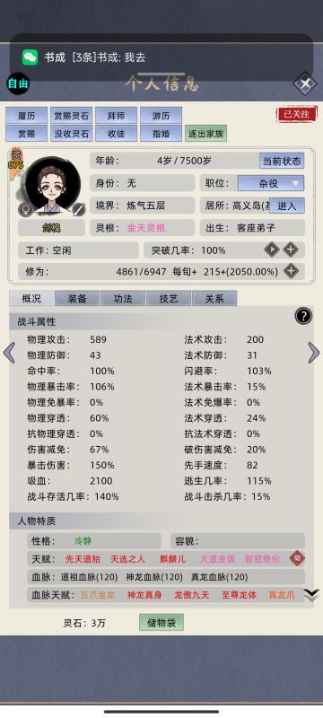 修仙家族模拟器 名人血脉攻略