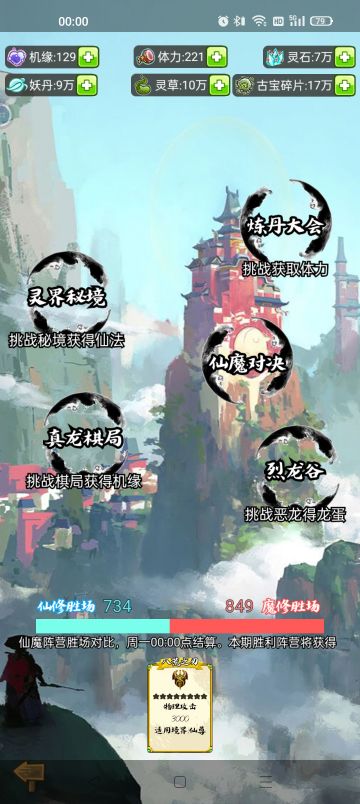 { "text": "第一周仙魔对决,魔修逆袭仙修,魔修阵营获胜!\n恭喜所有魔修道友。真可谓道高一次魔高一丈!\n所有魔修阵营玩家将获得仙尊古宝,\n仙修玩家将返还5000机缘以示鼓励。\n各位道友加油,让我们一起在寻仙问道的路上前进吧!", "raw_text": "" }