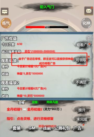 广告免观看直接获得神晶