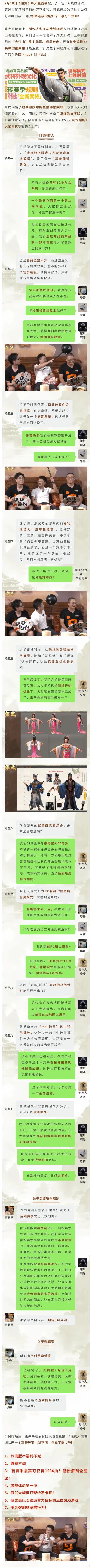 直播预告丨7.10 烽火直面会,制作人亲自回应花式吐槽