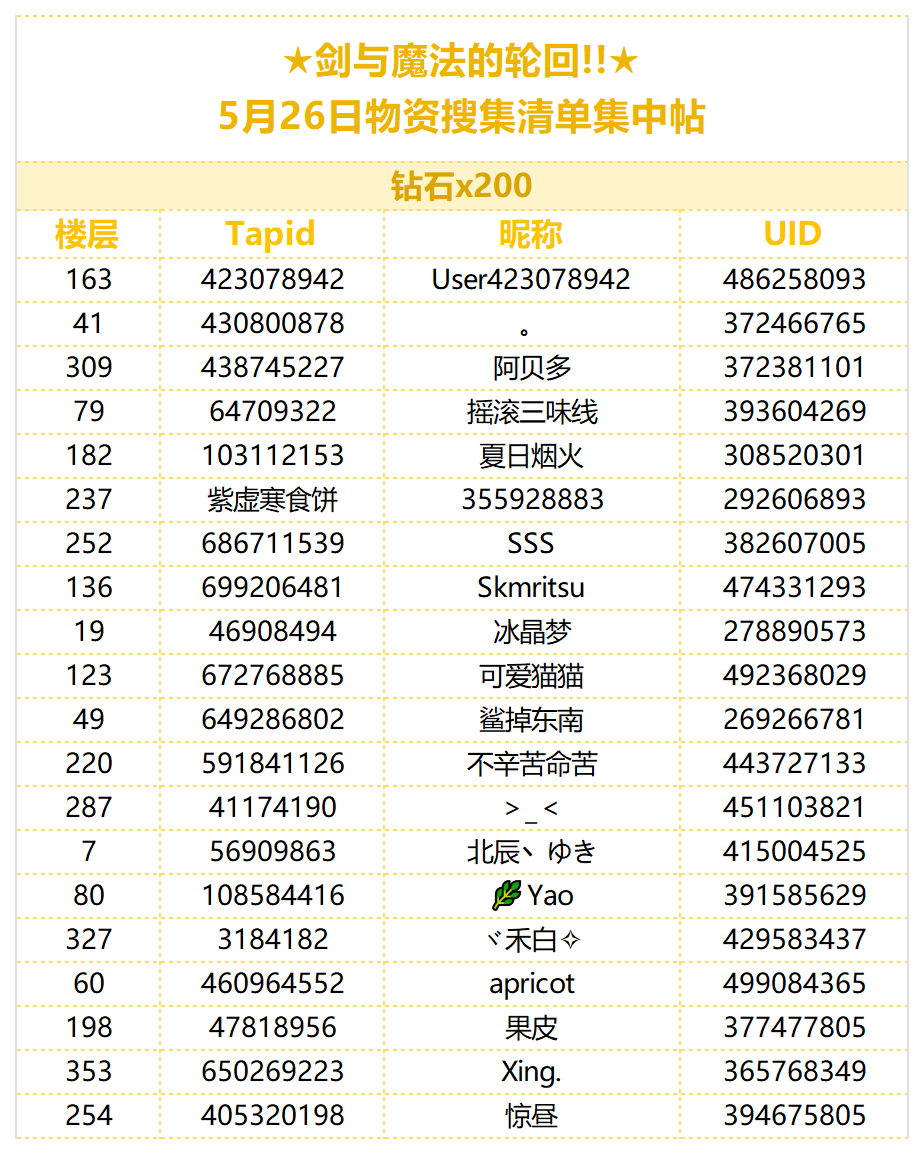 (已开奖)★剑与魔法的轮回!!★5月26日搜集清单集中帖