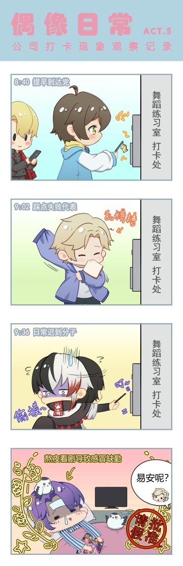 偶像日常四格漫画 | 05 公司打卡现象观察记录
