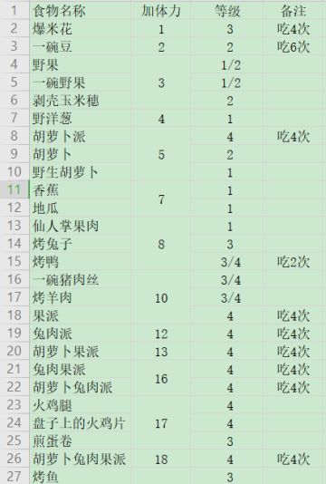 四级食物的获得/制作方法