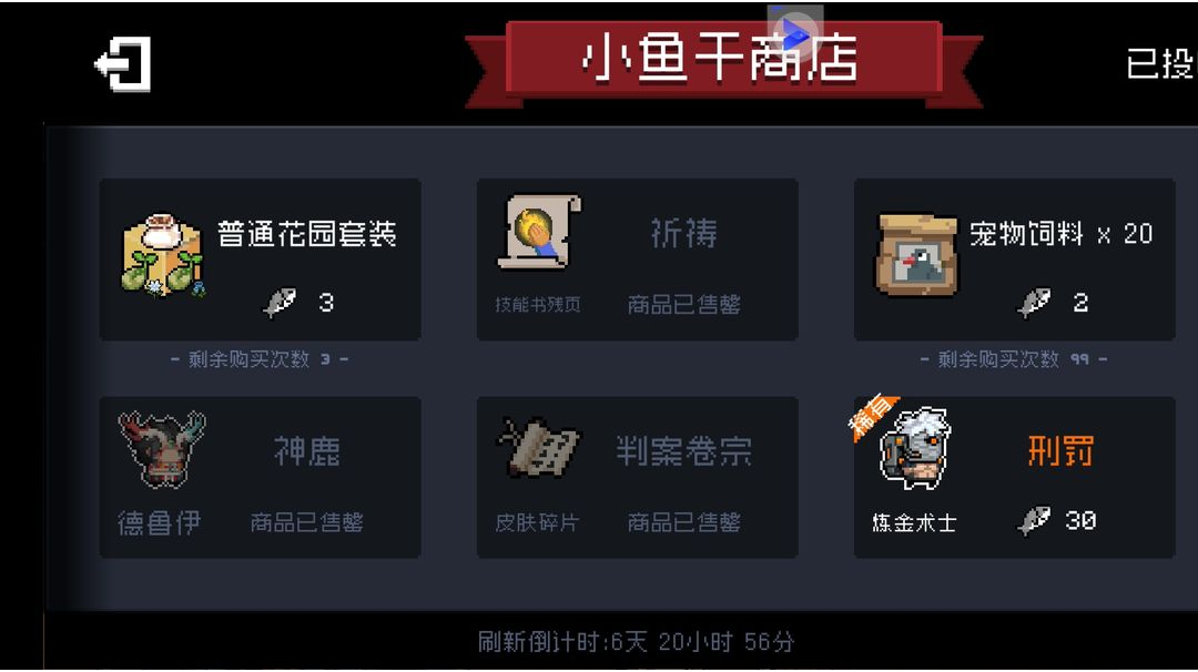 未来两周小鱼干商店以及周挑战