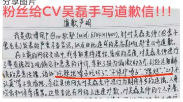 《光与夜之恋》玩家向CV吴磊手写道歉信