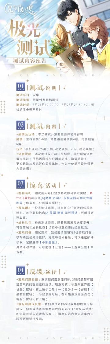 反馈收集 |《光与夜之恋》极光测试BUG与建议收集贴
